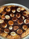 Small pizza dough with fresh cut bananas smothered in sugary cinnamon spread
