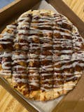 Fancy twisted crust with my signature white sauce topped with mozzarella cheese, Alaskan shrimp, lemon, black pepper, and fresh garlic.